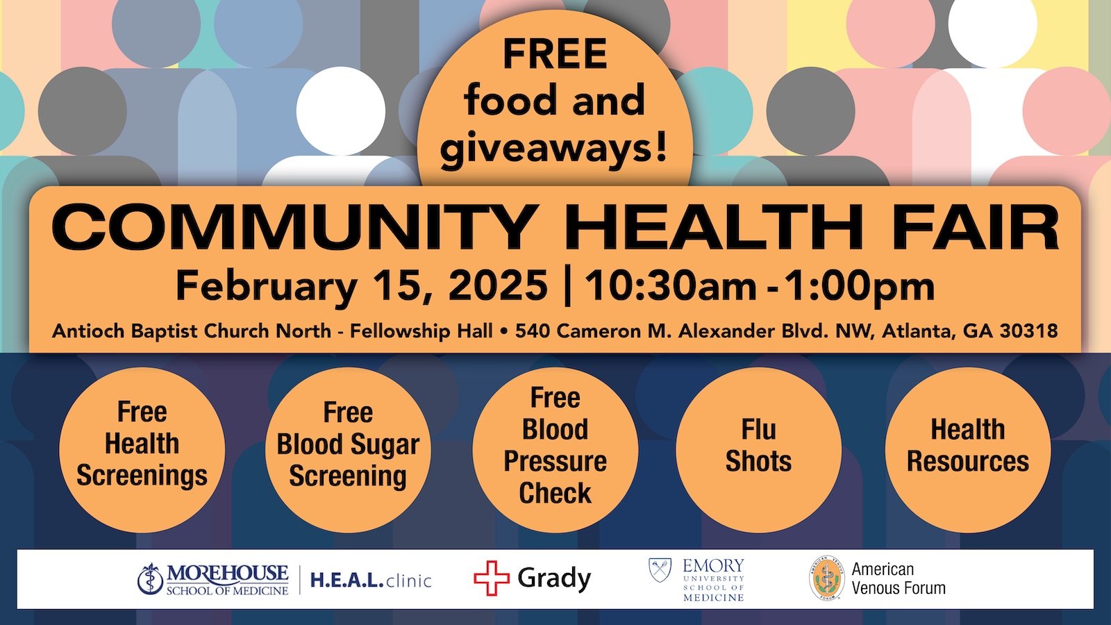 Morehouse School of Medicine will be present at this event to provide free biometric screenings. This will include blood pressure, glucose, and cholesterol.