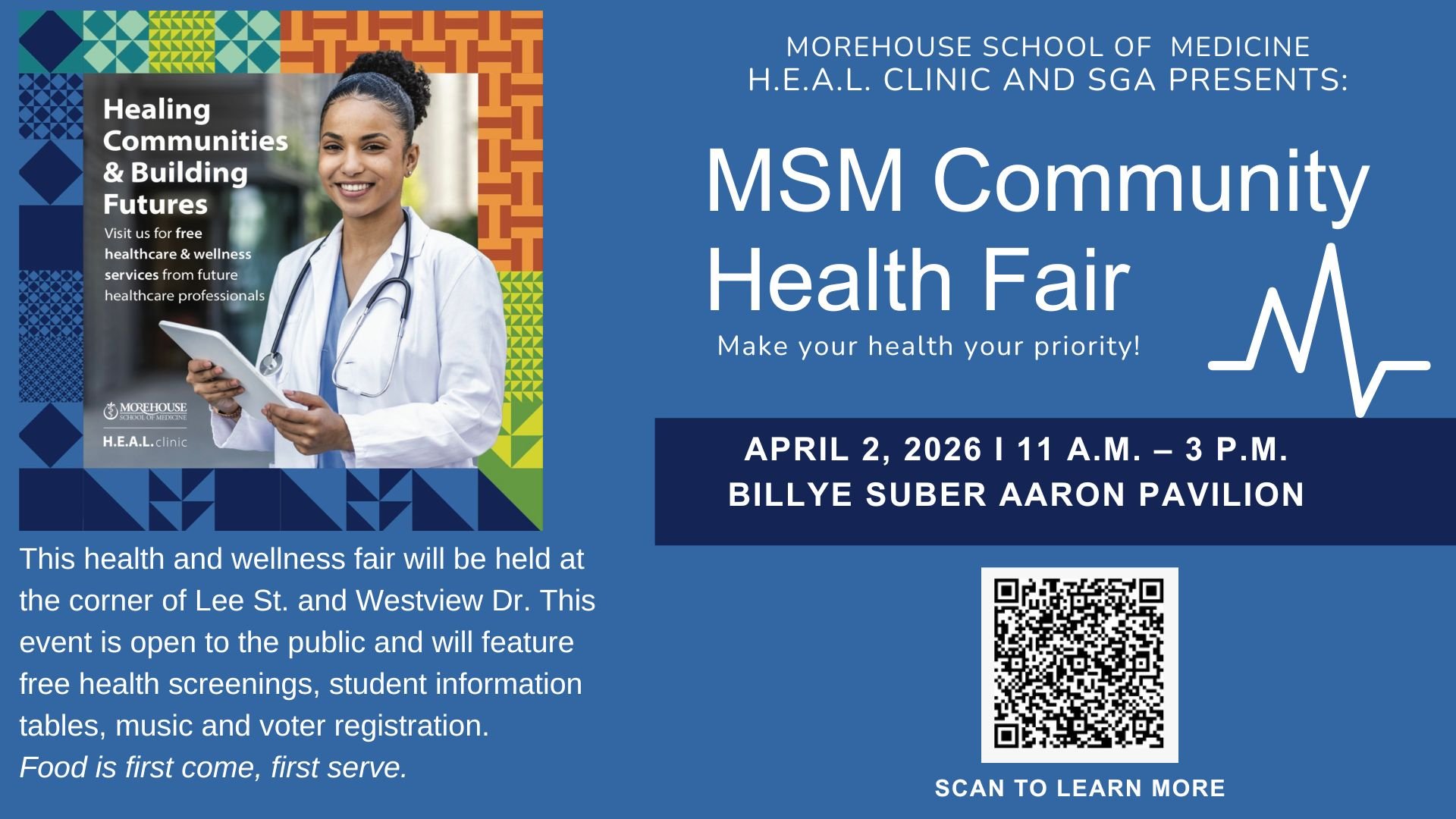 You're Invited to Prioritize Your Health! On Thursday, April 2, Morehouse School of Medicine (MSM) proudly celebrates the day our institution was founded—a legacy rooted in service, equity and advancing health justice. In honor of this milestone, we are giving back in the most meaningful way we know: by serving our community.